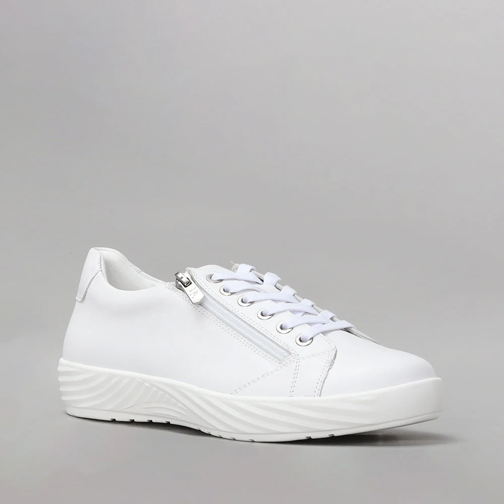 Elevate your style with Alia from Le Sansa, a fusion of casual comfort and chic design. These tennis sneakers feature a two-toned leather upper, zip trim, and cord laces for added flair. Enjoy all-day comfort with a platform midsole and our signature Naked Arches footbed. Orthotic-friendly and lightweight, Net is perfect for any occasion.
